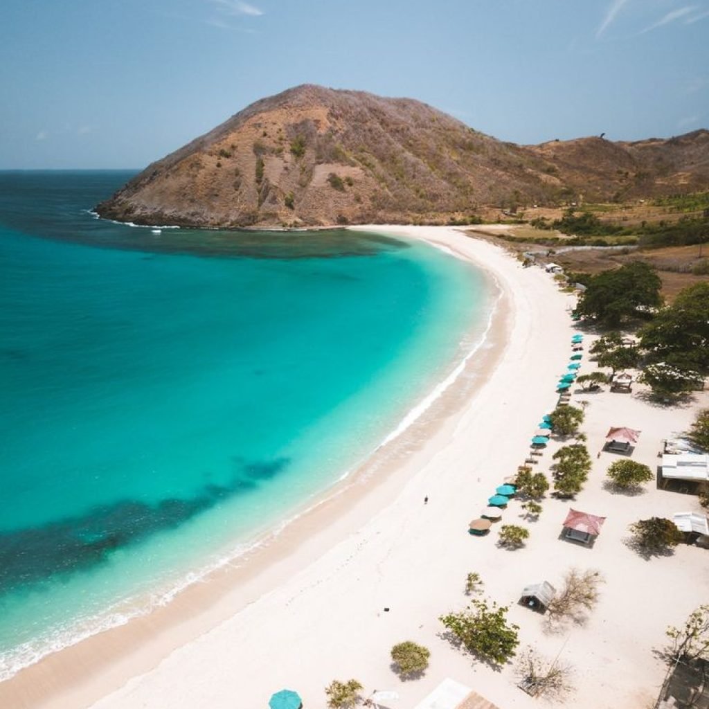 Kuta Beach in Lombok is a popular destination known for its beautiful, expansive white sand and clear blue waters. It’s famous for its laid-back atmosphere, great surfing conditions, and stunning sunsets. The beach also offers a range of local eateries and accommodations, making it a favorite spot for both relaxation and adventure.