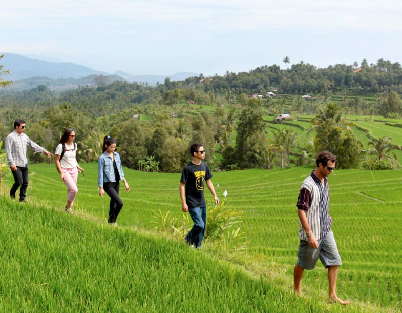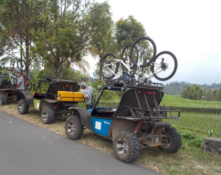 Start from base camp at 10.00am after introduction and safety briefing for downhill cycling. Choose your mountain bike, and loaded to the 4WD. Drive 15 minutes to Asah Munduk, for a fabulous view of two crater lakes. Take the bikes from here over back roads, all down-hill traversing narrow tracks through cloves and coffee plantations, with beautiful views out over the coast to Java and the Indian Ocean. After approximately one and half hour of cycling, you will end up at Buddhist monastery. After this, continue the trip by 4WD drives to the Banjar natural hot springs. Enjoy a relaxing swim in the hot springs, or a private jacuzzi. Picnic lunch will be served enroute on the 4WD for the return journey uphill to reach base camp.