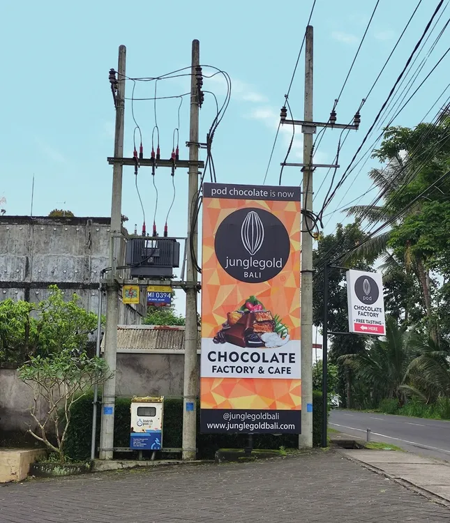 Junglegold Bali Factory is the world’s first 100% plant-based chocolate factory, crafting premium artisanal chocolates since 2010. Located in Denpasar, it uses locally sourced cacao beans to produce award-winning, direct-trade chocolates.